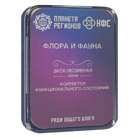 На КФС ФЛОРА И ФАУНА прописаны: космоэнергетический канал Лугра; поляризация растения монарда; славяно-арийские символы (Яроврат, Огненный символ Яро-Бога, управляющего яровым цветением и всеми благодатными погодными условиями; Солард, Величия Плодородия Матери – Сырой Земли, получающей Свет, Теплоту и Любовь от Ярилы-Солнца; символ Процветания Земли Предков, символ Огня, дающий достаток и процветание Родам, созидающим для своих потомков, во славу Светлых Богов и Многомудрых Предков).